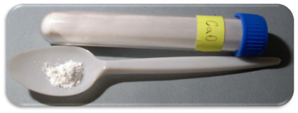 Keywords: Oxid vápenatý.PNG Oxid vápenatý - CaO own 2007-06-24 Ondřej Mangl Není nutno Calcium oxide Samples of chemical compounds