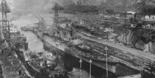 | Keywords: Oyodo 1948.jpg en Japanese cruiser Oyodo on 17 january 1948 being scrapped in the No 4 drydok Kure branch of the Harima Shipyard former Kure naval yard ru Японский к ейсе «Оёдо» 17 янва я 1948 года в ходе азбо ки в сухом доке 4 под азделения в Ку э ве фи «Ха има» бывшая ве фь а сенала флота в Ку э http //3 bp blogspot com/-Vky79Q64DGs/UypDYU5dSmI/AAAAAAAADOw/LJQw-FX9ujQ/s1600/Oyodo+1948 jpg Imperial Japanese Navy 1948-01-17 PD-Japan-oldphoto Ōyodo ship 1943 | ||||