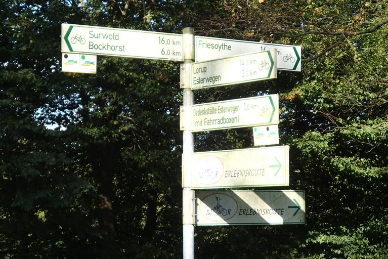 Keywords: Surwold 16km, Bockhorst 6km Friesoythe 14km Lorup 14km, Esterwegen 3.5km Memorial Esterwegen with bike boxes 1km küstenkanal radschnellweg cycleway oldenburg bourtange concentrationcamp memorial esterwegen erlebnisrout moor
