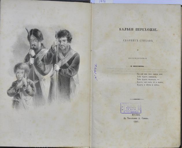 Keywords: P. Bezsonov poems and investigation 1614.jpg Калікі пе ехожі Ві ші та дослідження П Безсонова осква 1861 Ф онтиспіс та титульний а куш З особистої бібліотеки І Ф анка Calico passers Bezsonov poems and investigation Moscow 1861 Frontispiece and title page From I Franko personal Library 1861 Institution Shevchenko Institute of Literature Digital Collection PD-old-70-1923 1861 books Franko Personal Library Libraries in Ukraine Collections of books in libraries in Ukraine Shevchenko Institute of Literature Uploaded with VicuñaUploader |