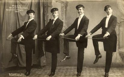Keywords: monochrome Studenterdansen Maxis! Studenterrevyen 1909. Foto: Eivind Enger, Norsk Kunstforlag Fra venstre mot høyre: Stud. real. - Student Ragnar Hanneborg, Stud. filol.- Stud. filol. Ragnar Ullmann,Stud. teol. - Student Tor Knudsen, Stud. med. - Student Gunnar Hagen. Arkivref.: PA1322Gb9_1_62 Studenterdansen Maxis! Studenterrevyen 1909. Foto: Eivind Enger, Norsk Kunstforlag Fra venstre mot høyre: Stud. real. - Student Ragnar Hanneborg, Stud. filol.- Stud. filol. Ragnar Ullmann,Stud. teol. - Student Tor Knudsen, Stud. med. - Student Gunnar Hagen. Arkivref.: PA1322Gb9_1_62 |