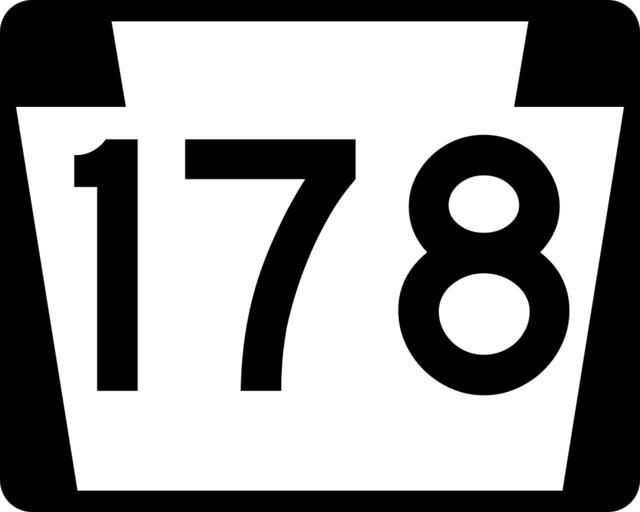 | Keywords: PA-178.svg 750 mm by 600 mm 30 in by 24 in Pennsylvania shield made to the specifications of the Manual on Uniform Traffic Control Devices MUTCD 2003 Edition sign M1-5 Uses the Roadgeek 2005 fonts United States law does not permit the copyrighting of typeface designs and the fonts are meant to be copies of a U S Government-produced work anyway Own 2006-11-25 TwinsMetsFan Public Domain Pennsylvania Route shields 178 | ||||
