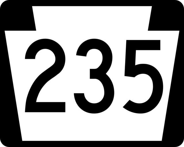 Keywords: PA-235.svg 750 mm by 600 mm 30 in by 24 in Pennsylvania shield made to the specifications of the Manual on Uniform Traffic Control Devices MUTCD 2003 Edition sign M1-5 Uses the Roadgeek 2005 fonts United States law does not permit the copyrighting of typeface designs and the fonts are meant to be copies of a U S Government-produced work anyway Own 2006-11-29 TwinsMetsFan Public Domain Pennsylvania Route shields 235 |