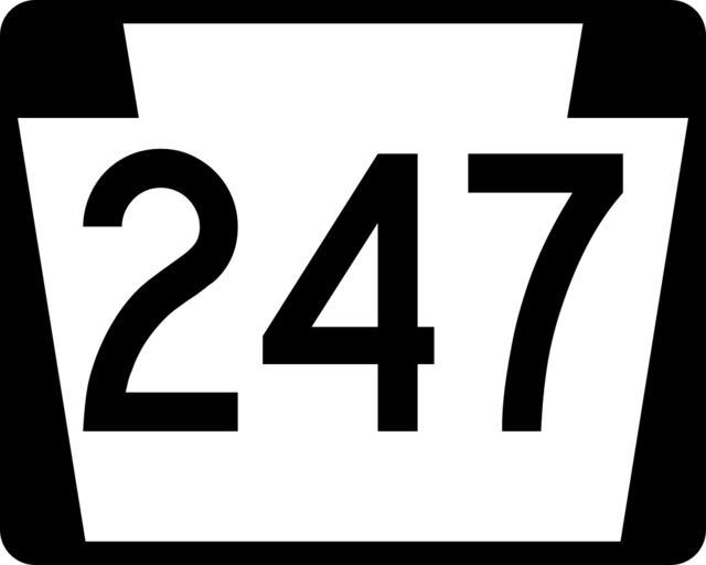 Keywords: PA-247.svg 750 mm by 600 mm 30 in by 24 in Pennsylvania shield made to the specifications of the Manual on Uniform Traffic Control Devices MUTCD 2003 Edition sign M1-5 Uses the Roadgeek 2005 fonts United States law does not permit the copyrighting of typeface designs and the fonts are meant to be copies of a U S Government-produced work anyway Own 2006-08-05 TwinsMetsFan Public Domain Pennsylvania Route shields 247 |