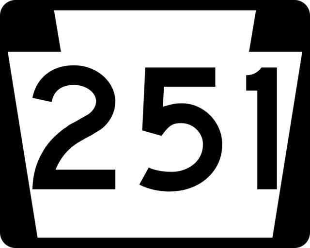 Keywords: PA-251.svg 750 mm by 600 mm 30 in by 24 in Pennsylvania shield made to the specifications of the Manual on Uniform Traffic Control Devices MUTCD 2003 Edition sign M1-5 Uses the Roadgeek 2005 fonts United States law does not permit the copyrighting of typeface designs and the fonts are meant to be copies of a U S Government-produced work anyway Own 2006-11-29 TwinsMetsFan Public Domain Pennsylvania Route shields 251 Pennsylvania Route 251 |