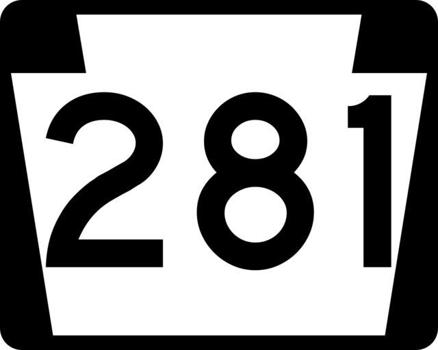 | Keywords: PA-281.svg 750 mm by 600 mm 30 in by 24 in Pennsylvania shield made to the specifications of the Manual on Uniform Traffic Control Devices MUTCD 2003 Edition sign M1-5 Uses the Roadgeek 2005 fonts United States law does not permit the copyrighting of typeface designs and the fonts are meant to be copies of a U S Government-produced work anyway Own 2006-11-16 TwinsMetsFan Public Domain Pennsylvania Route shields 281 Pennsylvania Route 281 | ||||
