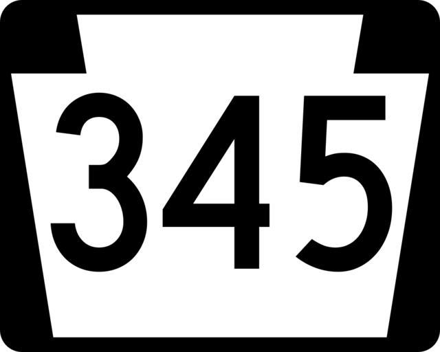 | Keywords: PA-345.svg 750 mm by 600 mm 30 in by 24 in Pennsylvania shield made to the specifications of the Manual on Uniform Traffic Control Devices MUTCD 2003 Edition sign M1-5 Uses the Roadgeek 2005 fonts United States law does not permit the copyrighting of typeface designs and the fonts are meant to be copies of a U S Government-produced work anyway Own 2006-11-12 TwinsMetsFan Public Domain Pennsylvania Route shields 345 | ||||