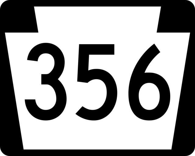 | Keywords: PA-356.svg 750 mm by 600 mm 30 in by 24 in Pennsylvania shield made to the specifications of the Manual on Uniform Traffic Control Devices MUTCD 2003 Edition sign M1-5 Uses the Roadgeek 2005 fonts United States law does not permit the copyrighting of typeface designs and the fonts are meant to be copies of a U S Government-produced work anyway own 2006-07-20 Homefryes Public Domain Pennsylvania Route shields 356 Pennsylvania Route 356 | ||||