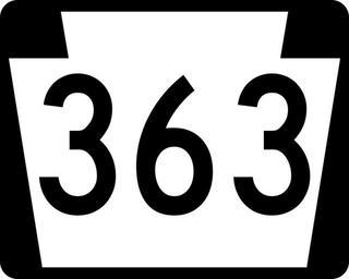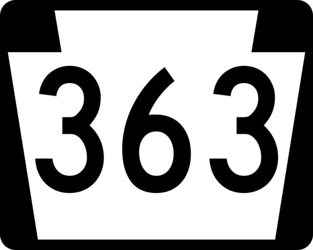 Keywords: PA-363.svg 750 mm by 600 mm 30 in by 24 in Pennsylvania shield made to the specifications of the Manual on Uniform Traffic Control Devices MUTCD 2003 Edition sign M1-5 Uses the Roadgeek 2005 fonts United States law does not permit the copyrighting of typeface designs and the fonts are meant to be copies of a U S Government-produced work anyway Own 2006-10-01 TwinsMetsFan Public Domain Pennsylvania Route shields 363 |