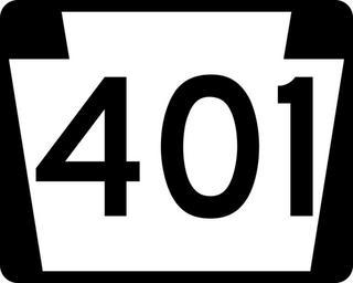 Keywords: PA-401.svg 750 mm by 600 mm 30 in by 24 in Pennsylvania shield made to the specifications of the Manual on Uniform Traffic Control Devices MUTCD 2003 Edition sign M1-5 Uses the Roadgeek 2005 fonts United States law does not permit the copyrighting of typeface designs and the fonts are meant to be copies of a U S Government-produced work anyway own 2006-07-16 TwinsMetsFan Public Domain Pennsylvania Route shields 401 Pennsylvania Route 401 |
