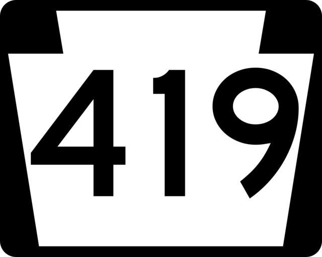 | Keywords: PA-419.svg 750 mm by 600 mm 30 in by 24 in Pennsylvania shield made to the specifications of the Manual on Uniform Traffic Control Devices MUTCD 2003 Edition sign M1-5 Uses the Roadgeek 2005 fonts United States law does not permit the copyrighting of typeface designs and the fonts are meant to be copies of a U S Government-produced work anyway Own 2006-11-29 TwinsMetsFan Public Domain Pennsylvania Route shields 419 | ||||