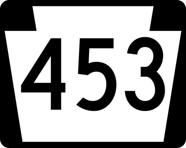 | Keywords: PA-453.svg 750 mm by 600 mm 30 in by 24 in Pennsylvania shield made to the specifications of the Manual on Uniform Traffic Control Devices MUTCD 2003 Edition sign M1-5 Uses the Roadgeek 2005 fonts United States law does not permit the copyrighting of typeface designs and the fonts are meant to be copies of a U S Government-produced work anyway own 2006-07-23 TwinsMetsFan Public Domain Pennsylvania Route shields 453 | ||||