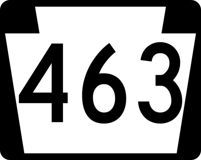 | Keywords: PA-463.svg 750 mm by 600 mm 30 in by 24 in Pennsylvania shield made to the specifications of the Manual on Uniform Traffic Control Devices MUTCD 2003 Edition sign M1-5 Uses the Roadgeek 2005 fonts United States law does not permit the copyrighting of typeface designs and the fonts are meant to be copies of a U S Government-produced work anyway Own 2006-11-13 TwinsMetsFan Public Domain Pennsylvania Route shields 463 Pennsylvania Route 463 | ||||