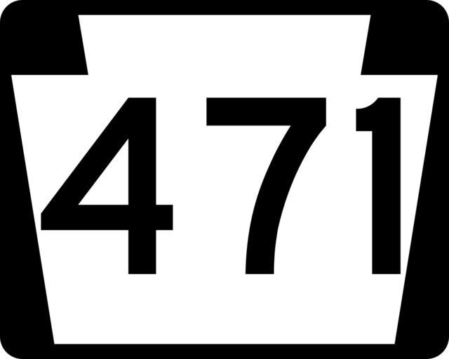 Keywords: PA-471.svg 750 mm by 600 mm 30 in by 24 in Pennsylvania shield made to the specifications of the Manual on Uniform Traffic Control Devices MUTCD 2003 Edition sign M1-5 Uses the Roadgeek 2005 fonts United States law does not permit the copyrighting of typeface designs and the fonts are meant to be copies of a U S Government-produced work anyway Own 2006-11-29 TwinsMetsFan Public Domain Pennsylvania Route shields 471 |