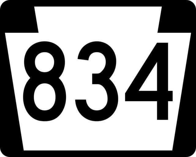 Keywords: PA-834.svg 750 mm by 600 mm 30 in by 24 in Pennsylvania shield made to the specifications of the Manual on Uniform Traffic Control Devices MUTCD 2003 Edition sign M1-5 Uses the Roadgeek 2005 fonts United States law does not permit the copyrighting of typeface designs and the fonts are meant to be copies of a U S Government-produced work anyway Own 2006-11-28 TwinsMetsFan Public Domain Pennsylvania Route shields 834 |