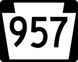 | Keywords: PA-957.svg 750 mm by 600 mm 30 in by 24 in Pennsylvania shield made to the specifications of the Manual on Uniform Traffic Control Devices MUTCD 2003 Edition sign M1-5 Uses the Roadgeek 2005 fonts United States law does not permit the copyrighting of typeface designs and the fonts are meant to be copies of a U S Government-produced work anyway Own 2006-11-27 TwinsMetsFan Public Domain Pennsylvania Route shields 957 | ||||