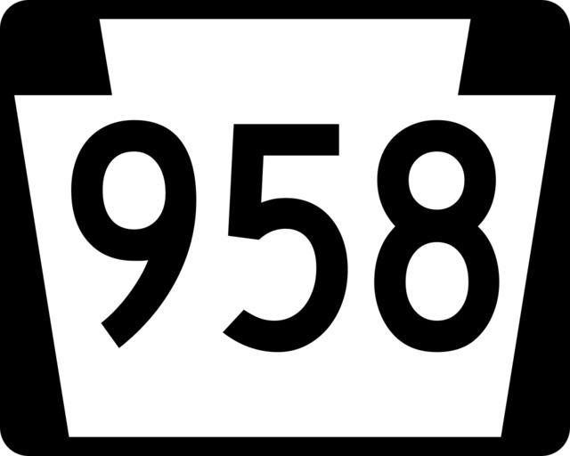 Keywords: PA-958.svg 750 mm by 600 mm 30 in by 24 in Pennsylvania shield made to the specifications of the Manual on Uniform Traffic Control Devices MUTCD 2003 Edition sign M1-5 Uses the Roadgeek 2005 fonts United States law does not permit the copyrighting of typeface designs and the fonts are meant to be copies of a U S Government-produced work anyway Own 2006-11-27 TwinsMetsFan Public Domain Pennsylvania Route shields 958 |