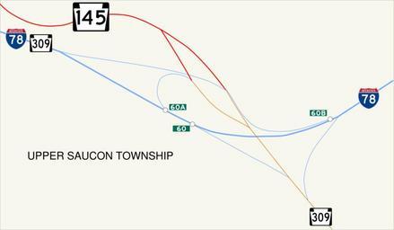 Keywords: PA Route 145 interchange Map.svg Inkscape The southern terminus of Pennsylvania Route 145; interchange with Interstate 78 and Pennsylvania Route 309 in Lanark Pennsylvania Own 2007-10-28 JohnnyAlbert10 Road maps of Pennsylvania 0145 Pennsylvania Route 145