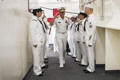 Keywords: Pacific Partnership 160810-N-CV785-1079.jpg en 160810-N-CV785-1079 KUANTAN Malaysia Aug 10 2016 Rear Adm Don Gabrielson prospective commander Task Force 73 salutes side boys aboard USNS Mercy T-AH 19 Gabrielson visited the ship for a Pacific Partnership 2016 reception held aboard during the mission's stop in Malaysia This is the first time Mercy and Pacific Partnership have visited Malaysia During the mission stop partner nations are working side-by-side with local military and civilian organizations in a search and rescue exercise civil engineering projects subject matter expert exchanges and community relation events University of California-San Diego PreDental Society photo by Ted Wendel/Released <br>Unit Joint Combat Camera Center 2016-08-10 michael d cole https //www dvidshub net/image/2802562/pacific-partnership 160810-N-CV785-1079 2016-08-18 22 16 KUANTAN MY PD-USGov-Military-Navy USNS Mercy T-AH-19 Pacific Partnership 2016 Images from DoD uploaded by Fæ |