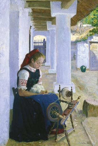 Keywords: Paczka Maiden spinning thread.jpg Artwork Creator Ferenc Paczka Oil on canvas Size cm 62 5 91 5 Private collection object history exhibition history credit line bottom right Paczka Ferenc accession number http //axioart com/ axioart com http //axioart com/index php op live_item id 44454 Info http //axioart com/images/live_images/original/326/136 jpg Pic PD-old-70 Ferenc Paczka |