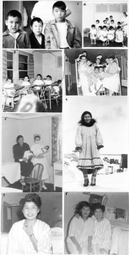| Keywords: alberta edmonton charles camsell hospital charlescamsellhospital hospitals people groupshot blackandwhite monochrome black and white 1. Sam Arnaliak, Peter Oloolak, Paul Kitigitok. 2. group of tots from Ward 712. 3. Dinner time in ward 712. 4. Miss Bodnar, MIss Ledell, Miss Moen, boys from 713. 5. Mrs. Sophie Paul, baby Paul, Miss Hermanitz, baby Sam. 6. Eskimo [Inuit] ex-patient. 7. Rosa Prairie Chicken. 8. Betsy Natannah, Rose Prairie Chicken. From the Charles Camsell Hospital fonds, PR1991.0383/76. 1. Sam Arnaliak, Peter Oloolak, Paul Kitigitok. 2. group of tots from Ward 712. 3. Dinner time in ward 712. 4. Miss Bodnar, MIss Ledell, Miss Moen, boys from 713. 5. Mrs. Sophie Paul, baby Paul, Miss Hermanitz, baby Sam. 6. Eskimo [Inuit] ex-patient. 7. Rosa Prairie Chicken. 8. Betsy Natannah, Rose Prairie Chicken. From the Charles Camsell Hospital fonds, PR1991.0383/76. |