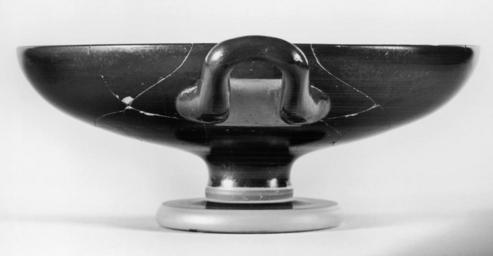 Keywords: Paidikos - Kylix Depicting Men Bending Drinking from Kylix - Walters 482240 - Right Side.jpg This red-figure kylix depicts a wreathed symposiast in the tondo He bends over to the right looking into a cup which he holds delicately by the foot in his right hand; the end of his beard disappears into the vessel In the left he holds an oinochoe which rests on the ground The pose of the figure is innovative and although komasts are frequently depicted in the tondo of archaic Attic red-figure cups none share this pose This is the only vase signed by Paidikos as painter ca 510 BC early Classical terracotta with handles cm 7 5 25 3 h x diam ; at mouth cm 19 4 diam ; at foot cm 7 8 diam accession number 48 2240 16250 Hesperia Art George Allen Philadelphia date and mode of acquisition unknown Walters Art Museum 1963 by purchase Museum purchase with funds provided by the S and A P Fund 1963 Translation Paidikos painted this place of origin Attica Greece Walters Art Museum license Ancient Greek red-figure pottery in the Walters Art Museum Paidikos Media contributed by the Walters Art Museum needs category review |