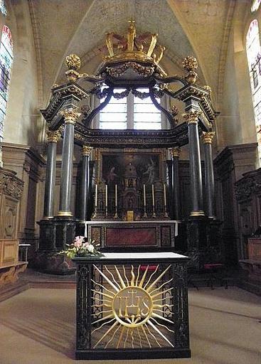 Keywords: Paimpont (35) Abbatiale Maître-autel.jpg fr Maître-autel de l'abbatiale de Paimpont 35 own GO69 2011-02-19 PM35000364 Cc-zero Église abbatiale Notre-Dame de Paimpont Taken with Olympus SP-590UZ Objets monuments historiques in Ille-et-Vilaine altars Paimpont 17th-century altars in Bretagne Paimpont Objets monuments historiques in Ille-et-Vilaine baldachins Paimpont |