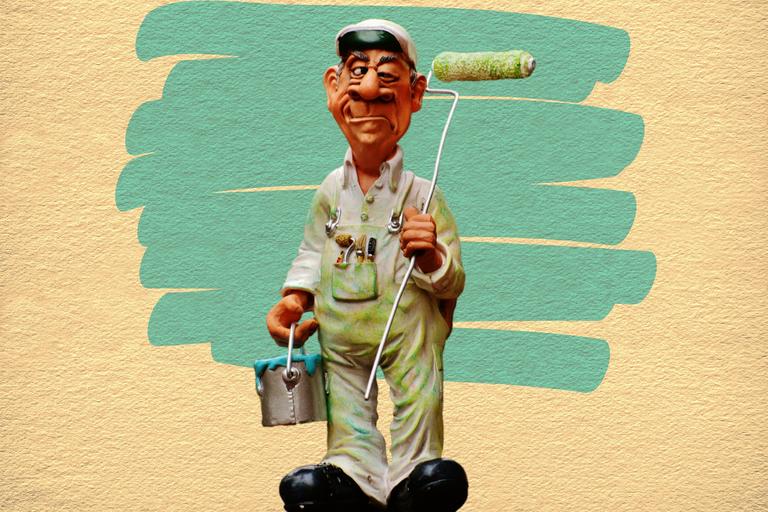 Keywords: painter delete hauswand work fig painter working paint color job painting roll renovate house painter ink roller funny cute deco decoration craft