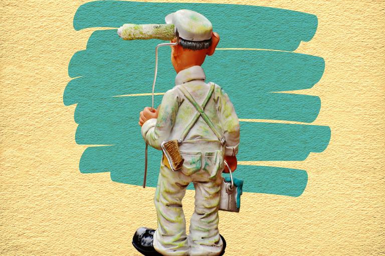 Keywords: painter delete hauswand work fig painter working paint color job painting roll renovate house painter ink roller funny cute deco decoration craft