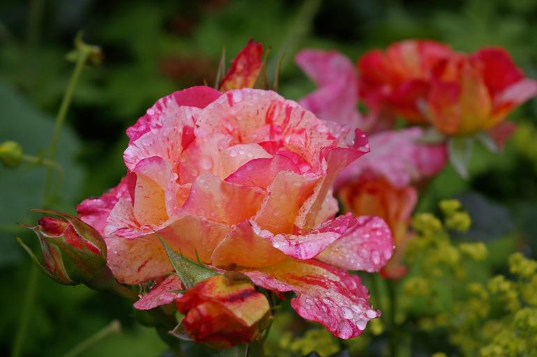 Keywords: painter rose bicolor rose blossom bloom yellow red rose filigree bed garden bi color color change summer floribunda colorful fragrance color bloom beautiful shrub rose rose bloom flora flower plant nature beauty romantic rose family drop of water rain