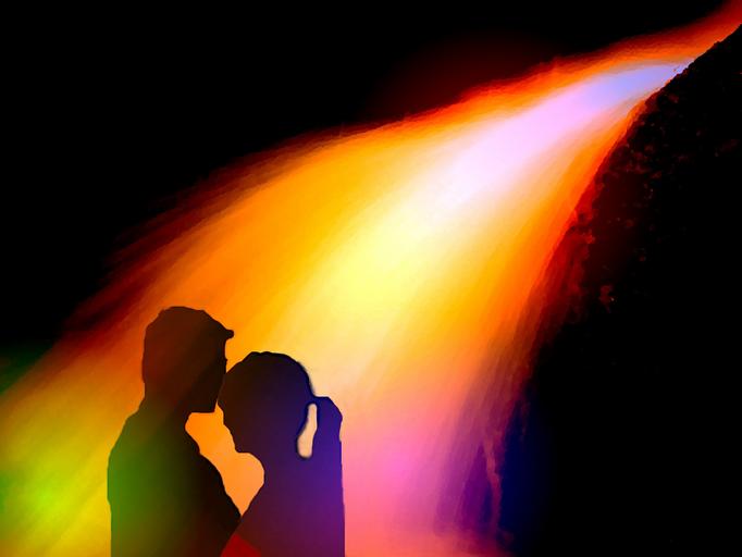 Keywords: pair love feeling tenderness romance kiss friendship relationship detention moments silhouette light color