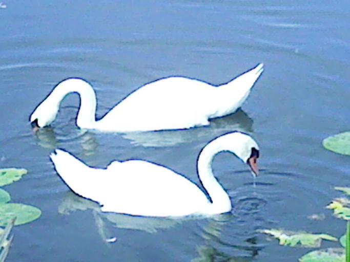 Keywords: Pair of Mute Swans (Cygnus olor), feeding.jpg has very low resolution and white areas are overexposed Image of a feeding pair of Mute Swans Cygnus olor photographed on a lake belonging to the Environment Agency August 11 2012 own 2012-08-11 BarkingFish Free to use Cygnus olor swimming and eating pairs Cc-zero |