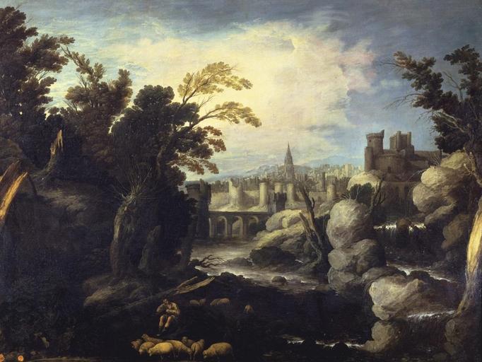 | Keywords: Paisaje con una ciudad, de Francisco Collantes (Real Academia de Bellas Artes de San Fernando).jpg La obra representa una ciudad amurallada a la derecha aparece un castillo y en primer plano puede observarse a un pastor junto a un rebaño de ovejas 1634 oil on canvas Size cm 242 183 Institution Real Academia de Bellas Artes de San Fernando http //ceres mcu es/pages/Main accession number 0619 http //ceres mcu es/pages/Main PD-old-100 17th-century landscape paintings Francisco Collantes 17th-century paintings in the Royal Academy of Fine Arts of San Fernando 1634 paintings in Spain |