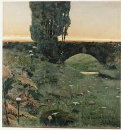 Keywords: Paisatge amb pont.JPG Artwork Creator Hermenegildo Anglada Camarasa Paisatge amb pont Representació d'un paisatge a la tardor Aquest és presidit per un pont de pedra per sota del qual passa un petit rierol a banda i banda del qual hi ha pedres i vegetació formada per plantes i matolls Al centre del marge superior de la tela trobem uns xiprers A l'angle inferior esquerre hi ha cards 1890 Oil on canvas cm Institution Biblioteca Museu Víctor Balaguer object history exhibition history credit line accession number place of creation Biblioteca Museu Víctor Balaguer-cooperation PD-Art PD-old-100-1923 Uploaded with UploadWizard Paintings in the Biblioteca Museu Víctor Balaguer Hermenegildo Anglada Camarasa 19th-century paintings Landscape paintings Paintings of bridges Realism in Spain |