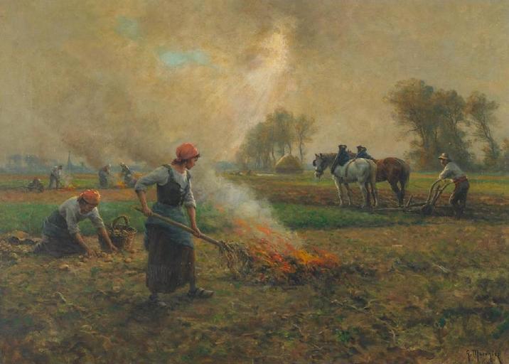 Keywords: Paix et abondance (Peace and plenty).jpg oil canvas cm 60 3 81 3 accession number object history Watson Art Galleries Montreal<br/>sold at Waddington's Toronto 2009 credit line G Maroniez ~ lower right signature waddingtons ca PD-old-auto-1923 1933 DEFAULTSORT Georges-Philibert-Charles Maroniez - La cueillette des pommes de terre Georges Maroniez Uploaded with UploadWizard Ploughing in art |