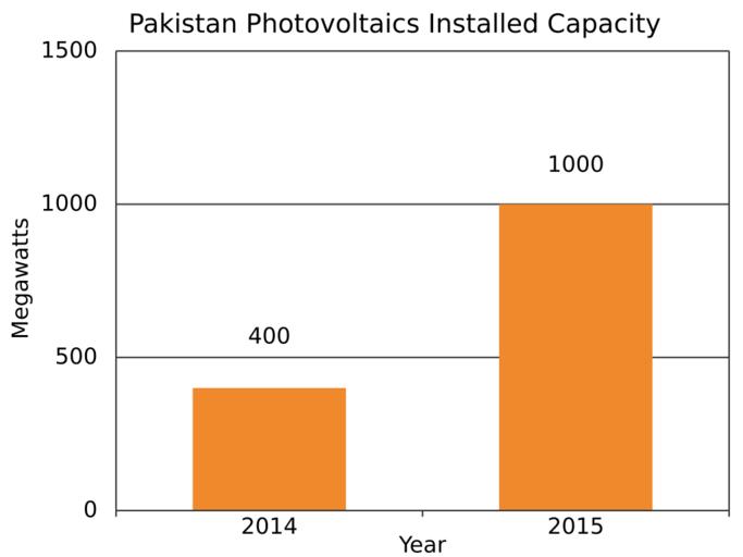 | Keywords: Pakistan Photovoltaics Installed Capacity.svg translate yes en Installed photovoltaics in Pakistan from 2014 to 2015 Source http //www iea-pvps org/fileadmin/dam/public/report/PICS/IEA-PVPS_-__A_Snapshot_of_Global_PV_-_1992-2015_-_Final_2_02 pdf IEA-PVPS 2016-05-03 own Delphi234 other versions cc-zero Solar energy in Pakistan Photovoltaic power statistics |