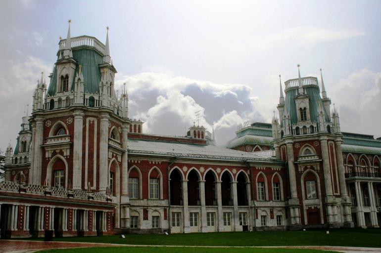 Keywords: palace building gothic eclectic architecture green roofs red walls ornate clouds