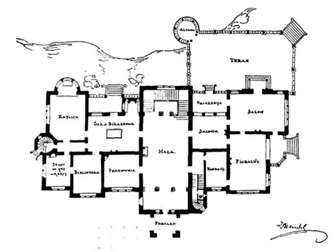 Keywords: Palace in Skolyszyn (01).png uk Палац у Сколишині Польща П оект Зигмунта Генделя 1862 1929 http //bcpw bg pw edu pl/dlibra/doccontent id 937 Architekt 1902 10 Zygmunt Hendel 1862 1929 before 1902 PD-old PD-Poland Zygmunt Hendel Skołyszyn Floor plans of Poland |