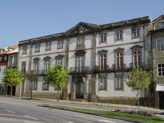 | Keywords: Palacete dos Vilhenas Coutinhos.JPG Palacete dos Vilhenas Coutinhos in Braga Portugal O edifício tem duas fachadas distintas A mais imponente desenho de Carlos Amarante apresenta três janelas no rés do chão e segundo andar Repetido aspecto na ala poente e nascente corpo central grande portão encimado por uma varanda e porta e encimado pelo o escudo de Braga nova varanda e porta A nascente desta fachada uma janela e no rés-do-chão e segunda andar e no primeiro varanda e porta Nas duas fachadas as mitras que encimam as portas são diferentes e razão explica-se por uma acta de cerca de 1870 que refere que a Câmara tendo comprado o edifício para o Tribunal em 1869 oito anos depois comprou uma casa ao lado e acrescentou ao Tribunal Foi comprado pela Câmara para servir de Tribunal cerca de 1869 Por 9 600 reis aos proprietários Costa Pereira Vilhena Era composto por um portão de entrada e dois corpos laterais em cada qual se notam três janelas na parte rés-do-chão ; três portadas e varandas encimadas por frontões de mitra no primeiro andar; no segundo num acrescento também três janelas em cada um Sobre a parte central porta de entrada; no primeiro andar varanda e portada com os mesmos motivos a encimá-la das janelas laterais No acrescento do 2º andar uma janela Sobre um frontão triangular e encerra as armas estilizadas de Braga Tempos depois uns escassos dez anos após a compra as instalações do tribunal eram exíguas A Câmara comprou uma casa ao nascente e aumentou assim a Casa da Justiça como se nota na foto rés-do-chão uma janela; primeiro andar uma varanda e portada e no último uma janela Os antigos proprietários ofereceram a Câmara o brasão estilizado por troca do seu de família O Átrio de entrada dava acesso ao piso das audiências por uma imponente escada devida aos risco de Moura Coutinho 1915 Tinha o edifício Costa Pereira comunicação com o da Praça do Município que esventrado como o do tribunal pela parte onde existia a muralha fernandina ostenta ainda as armas de Costa Pereira A Câmara vendeu todo o conjunto à firma Domingos da Silva Teixeira Own 2007-09-03 Joseolgon 41 551646 -8 428497 Palacete dos Vilhenas Coutinhos |