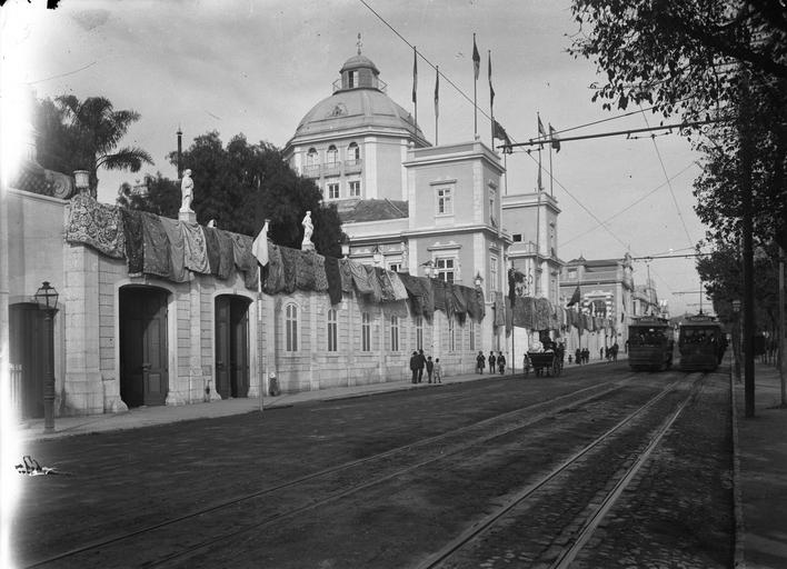 | Keywords: PalácioBurnay(c.1907).jpg Tramoj en Portugalio Palácio Burnay embandeirado nas suas torraes e com colchas e tapetes na balustrada procissão ; na Rua da Junqueira em frente dois elétricos cruzam-se o da direita para Belém e o da esquerda para o Rocio http //arquivomunicipal2 cm-lisboa pt/xarqdigitalizacaocontent/PaginaDocumento aspx DocumentoID 258441 AplicacaoID 1 Pagina 1 Linha 1 Coluna 1 http //arquivomunicipal2 cm-lisboa pt/xarqdigitalizacaocontent/Documento aspx DocumentoID 258441 AplicacaoID 1 http //arquivomunicipal2 cm-lisboa pt/X-arqWeb/SearchResultOnline aspx search _OB 3a 2b_QT 3aMFN_206696_Q 3a_EQ 3aT_D 3aT___ type PCD mode 0 page 0 res 1 simple 1 auth gPT2KGQi8TrfCTgqXWF3KrkY6tVnp 2b83RxYisTT7Ors 3d http //arquivomunicipal2 cm-lisboa pt/xarqdigitalizacaocontent/Documento aspx DocumentoID 258441 AplicacaoID 1 expand 1 http //arquivomunicipal2 cm-lisboa pt/xarqdigitalizacaocontent/Documento aspx DocumentoID 258441 AplicacaoID 1 List T «cota antiga» JBN003126 A9029 N7829 </span> Institution Arquivo Municipal de Lisboa 1907 Creator Joshua Benoliel see below Information_field 1st uploaded as the 34 000 091<sup>th</sup> file in Wikimedia Commons Lic PD-old Uploaded with VicuñaUploader Palácio Burnay Decorated balustrades Lisbon trams in the 1900s 2 Lisbon trams side by side Lisbon trams in the background Non-Siemens Lisbon trams on route 15 Lisbon trams facing left Lisbon trams head on Lisbon trams with unknown fleet number 203-282 Brill Flags in Portugal Black and white photographs of trams Damaged photographs |