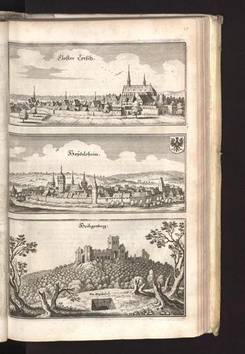 Keywords: Palatinatus Rheni (Merian) 090.jpg 089 091 Abbey and Altenmünster of Lorsch Bruchsal 17th-century Heidelberg 1645 Michaelskloster Heiligenberg