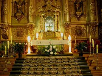 Keywords: palencia spain church cathedral interior inside steps architecture building structure altar pulpit sculpture engravings art artistic statues light lighting beautiful candles flowers plants confirmation
