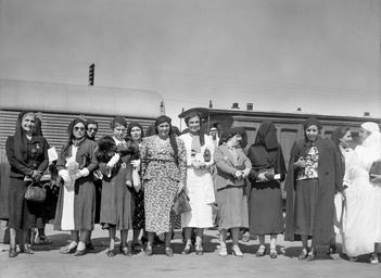 | Keywords: Palestine Delegation of Arab Ladies, 1938.jpg Palestine delegation of Arab ladies leaving Lydda Junction for Cairo Oct 12 1938 http //loc gov/pictures/resource/matpc 18788/ Palestine delegation of Arab ladies leaving Lydda Junction for Cairo Oct 12 '38 LOC-image matpc 18788 pnp 12 October 1938 American Colony Jerusalem Photo Dept photographer PD-Matson PD-Israel People of Hebron Taken with Stokes 75 | ||||
