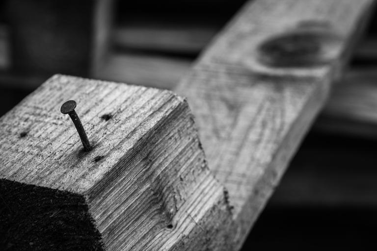 Keywords: palette building build wood nail black and white industry production produce investors work the idea of technology innovation pallets street city macro close detail close up wooden material structure goods transport storage logistics freight goods transport driving metal craft pointed tool stainless steel iron steel irons