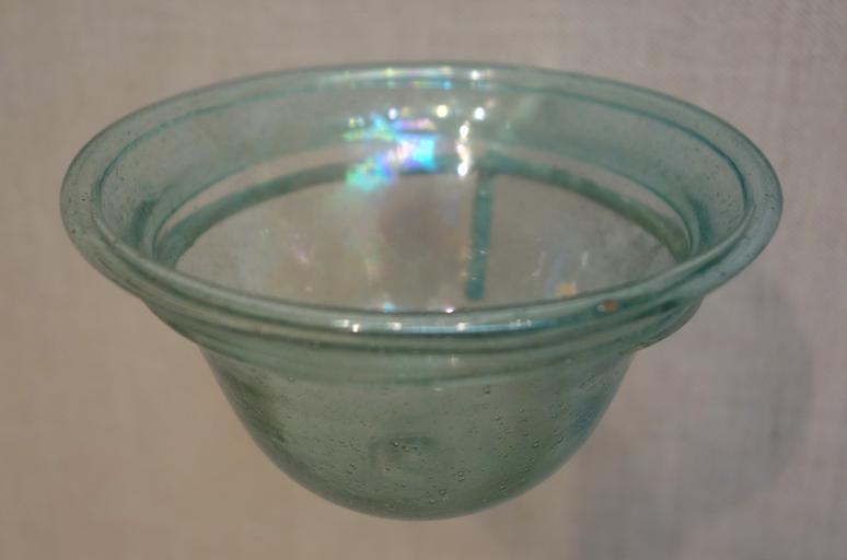 Keywords: Palm Cup, Frankish, 7th-8th century, Niederbreisig, Rheinland Pfalz, free-blown glass with folded rim, lent by Metropolitan Museum of Art - Chazen Museum of Art - DSC01939.JPG en Exhibit in the Chazen Museum of Art University of Wisconsin-Madison Madison Wisconsin USA This artwork is old enough so that it is in the public domain Photography was permitted in the museum without restriction 2013-07-21 13 14 07 own Daderot cc-zero Medieval art in the Chazen Museum of Art Uploaded with UploadWizard Ancient Germanic art Niederbreisig |