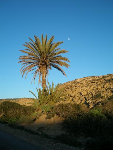 Keywords: palm evening sky moon morocco