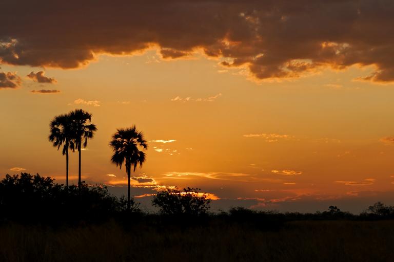 Keywords: palm trees sunset safari africa flock botswana landscape afterglow wilderness