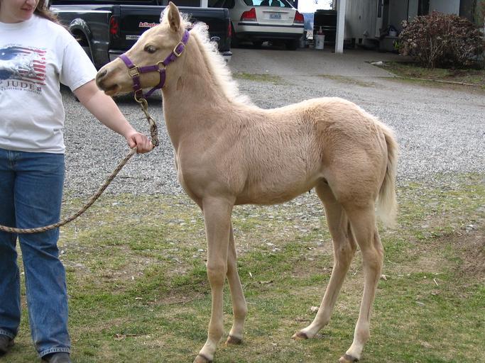 | Keywords: horses palomino colt outdoor animal In this picture the colt, named Bear, is about two months old. He is accompanied by a stablehand holding his lead. CC0 waiver: To the extent possible under law, I waive all copyright and related or neighboring rights to this work. In this picture the colt, named Bear, is about two months old. He is accompanied by a stablehand holding his lead. CC0 waiver: To the extent possible under law, I waive all copyright and related or neighboring rights to this work. |