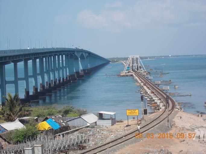 Keywords: 'Pamban road & rail bridge'.JPG en A view of the bridges own Rudolph A furtado Sunday 8-3-2015 Pamban Bridge Cc-zero