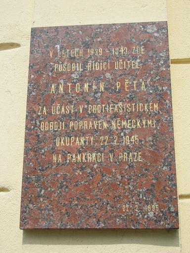 | Keywords: Pamětní deska Antonínu Pěťovi v Nýrově.JPG Pamětní deska Antonínu Pěťovi v Nýrově own 2007-08-14 Lukáš Malý uvolňuji dílo Nýrov Plaques in Blansko District Here-worked plaques in the Czech Republic World War II memorials in Blansko District |